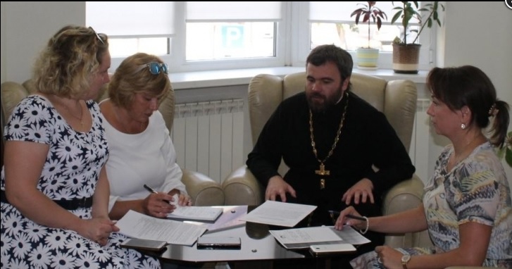 30 августа 2017 года в отделе религиозного образования и катехизации Ростовской-на-Дону епархии состоялось рабочее совещание, на котором присутствовал руководитель отдела иерей Александр Верченко, заместитель руководителя Ольга Шевченко, методист отдела Олеся Тодарчук и методист Информационно-аналитического центра образования г. Ростова-на-Дону Наталья Морозова.