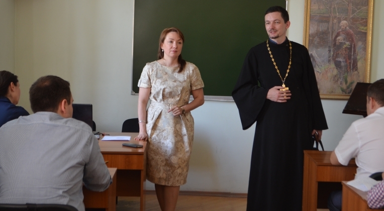 С использованием инновационного метода проблемно-ориентированного обучения священник на примере жизни и подвига царской семьи обсудил со слушателями курсов вопросы, связанные с пониманием святости в православной традиции. Протоиерей Александр Усатов пожелал плодотворной работы участникам семинара и обозначил необходимость подведения итогов обсуждения этой важной катехизической и педагогической темы.