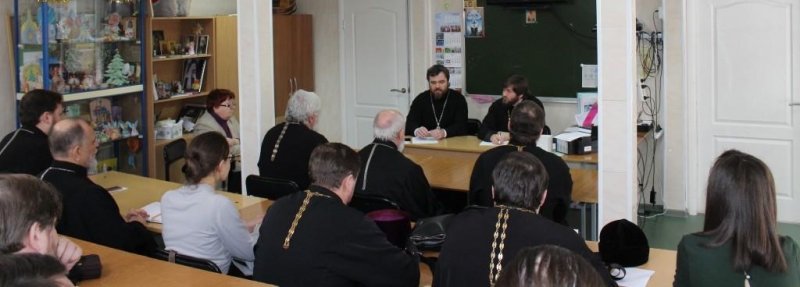 Обсуждались также вопросы работы воскресных школ и учебно-воспитательных групп, в частности, проведение традиционной Кирилло-Мефодиевской ученической олимпиады, участие приходов в грантовых конкурсах, во Всероссийском конкурсе «За нравственный подвиг учителя».