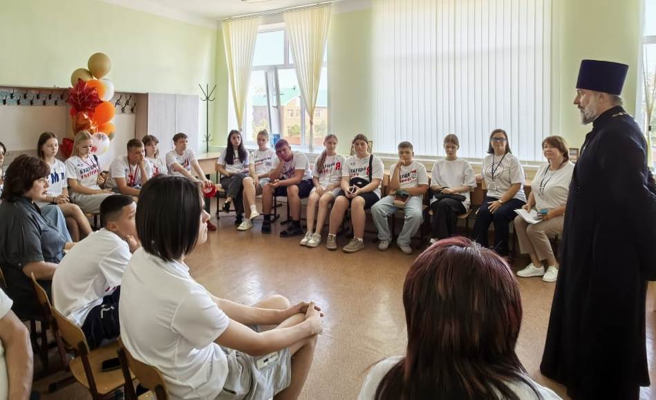 В рамках работы образовательной площадки состоялась встреча старшеклассников с руководителем ЕОРОиК Ольгой Шевченко и настоятелем храма Равноапостольной Марии Магдалины, иереем Даниилом Давиденко (с. Красный Десант ). В ходе беседы говорили о преданности русского человека, о его готовности встать на ее защиту. Ребята подготовили интерактивные презентации и сообщения об Александре Невском, Димитрии Донском, Александре Суворове, Федоре Ушакове, Кузьме Минине и Дмитрии Пожарском о святителях Донской земли: Митрофане Воронежском, Тихоне Задонском, праведном Павле Таганрогском, священномученике иерее Константине Верецком, праведном Иоанне Домовском.