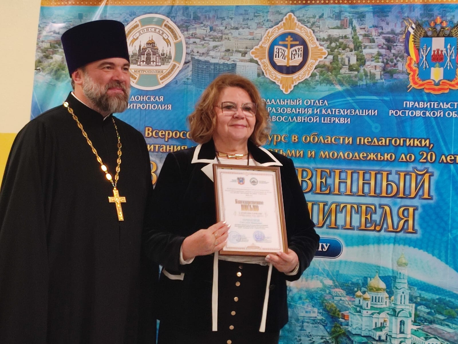 Иерей Александр Верченко, советник Главы Донской митрополии по вопросам религиозного образования и катехизации вручил благодарственные письма за личный вклад, содействие в организации и проведении I (регионального) этапа Всероссийского конкурса «За нравственный подвиг учителя» в Донской митрополии членам конкурсной и экспертной комиссий.