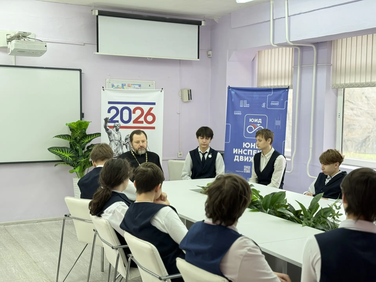 18 февраля 2026 года священники Ростовской-на-Дону епархии иерей Андрей Горячков, иерей Александр Георге, иерей Александр Верченко, иерей Алексий Кашуба, иерей Сергий Лысый, иерей Владимир Чигрин, иерей Александр Орешин, иерей Алексий Овчинников провели третью встречу по теме «Отношение к жизни и Отечеству». Встреча для старшеклассников 9-10 классов общеобразовательных школ №7, 23, 76, 80, 83, 110, Гимназиях №35 и 117прошла в форме конструктивного диалога.