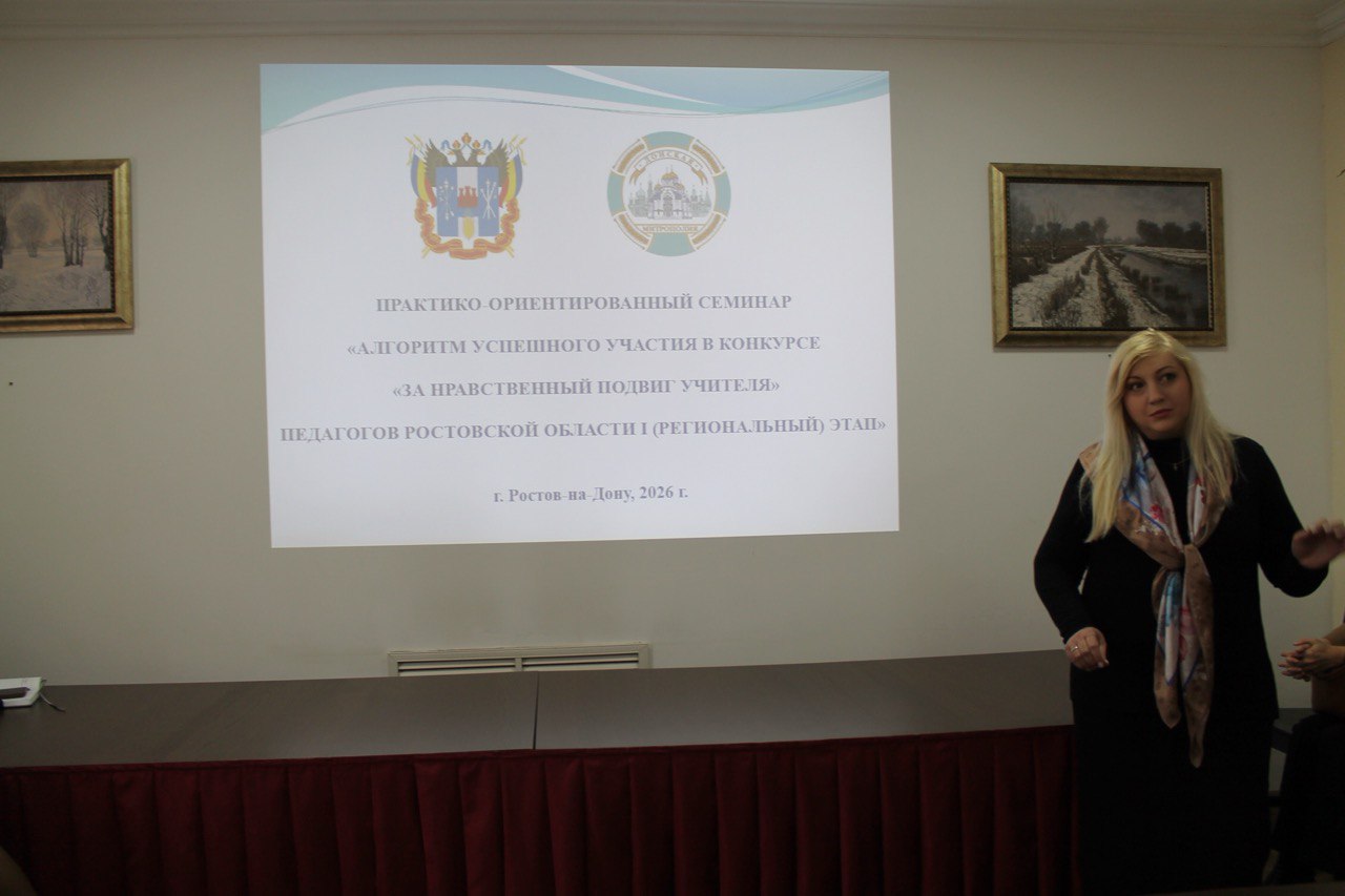 20 февраля 2026 года в конференц-зале Епархиального управления сотрудники ЕОРОиК провели практико-ориентированный семинар «Алгоритм успешного участия в конкурсе «За нравственный подвиг учителя» педагогов Ростовской области I (региональный этап)» для педагогов общеобразовательных учреждений города Ростова-на-Дону и воскресных школ.